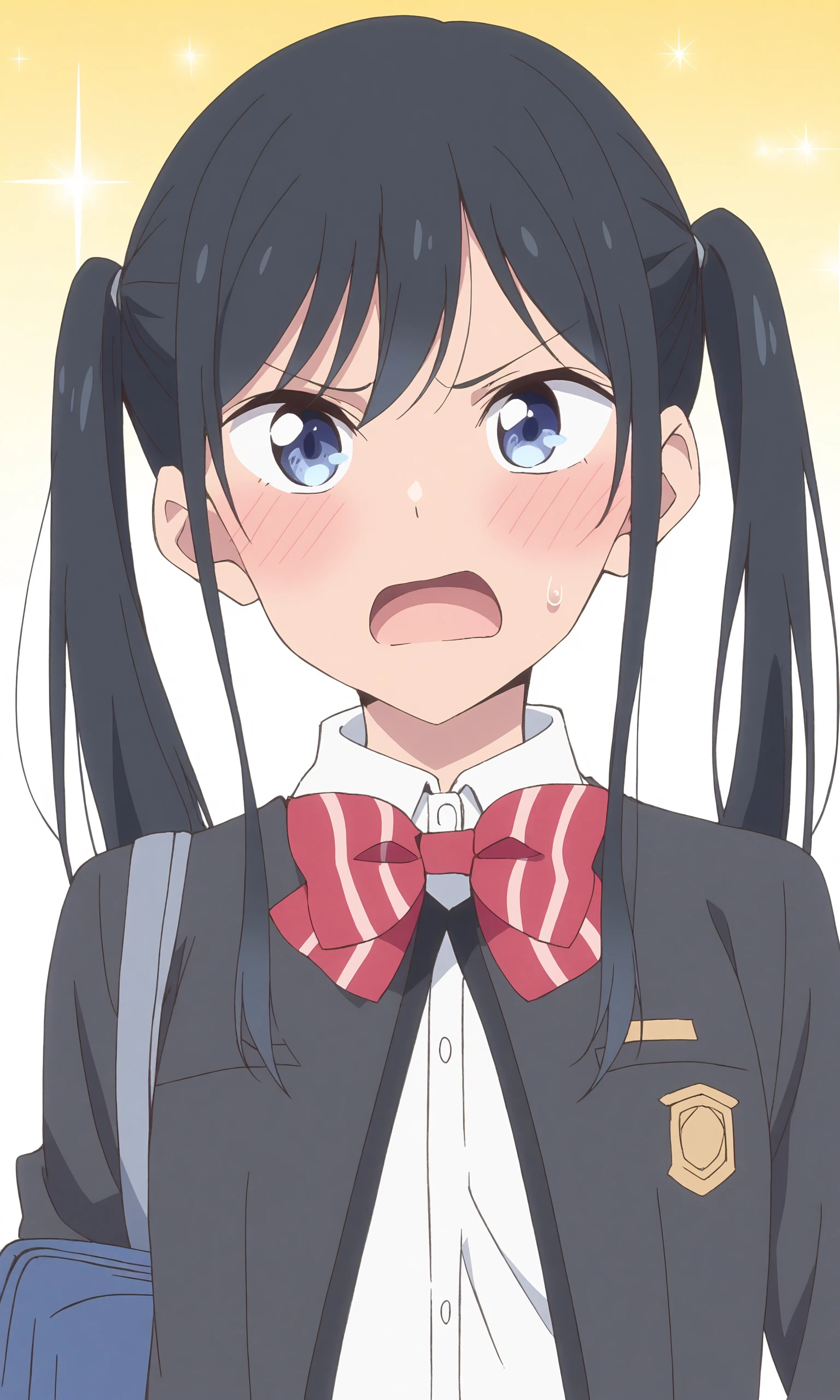 Rin, black hair, blue eyes, twintails, bangs, long hair,