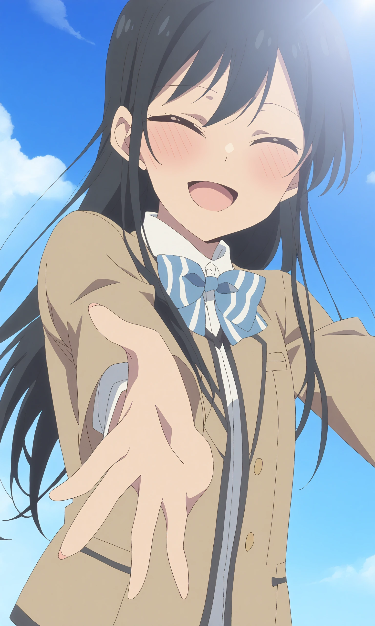 Rin, black hair, long hair, blue eyes, bangs, hair between eyes,