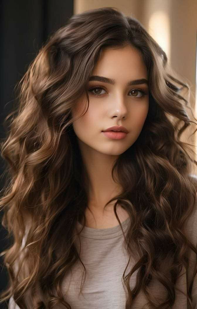 A hyper-realistic portrait of a young woman with long wavy brown hair, styled half-up in a casual bun. She has bright green eyes, smooth skin, and a natural soft makeup look with rosy cheeks and subtle lips. She is wearing a simple black top, giving her a minimalist yet elegant appearance. The background is softly blurred, highlighting her gentle smile and serene expression. Natural lighting, ultra-detailed, 8K resolution, cinematic portrait style.