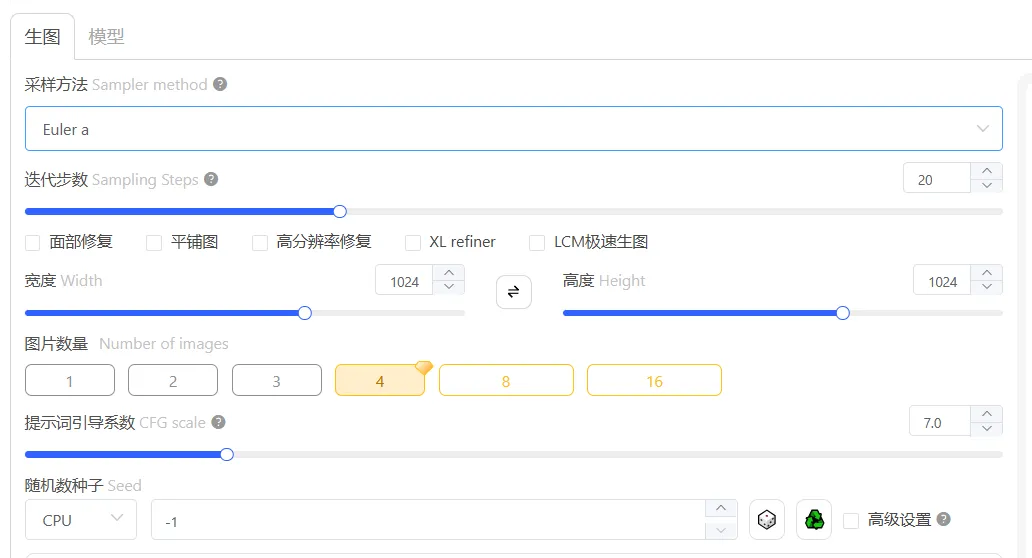为了达到最好的生图品质,请遵照以下参数配置来进行设置。