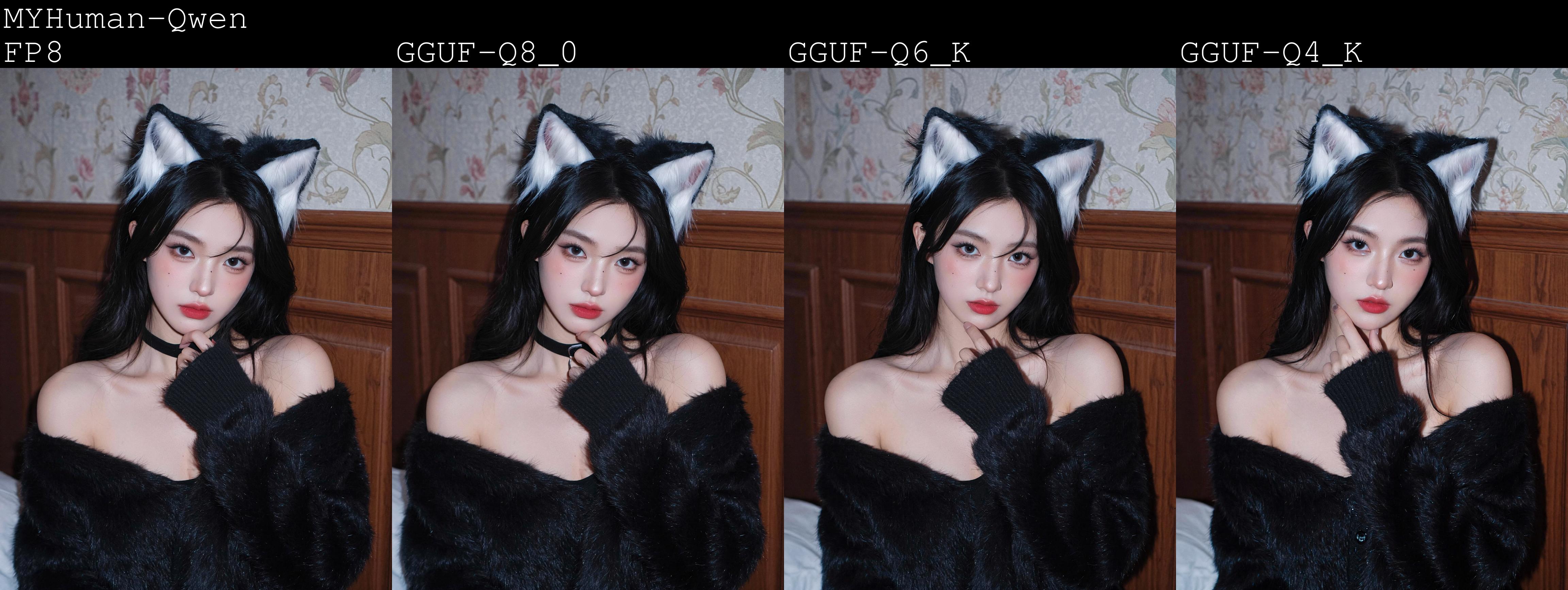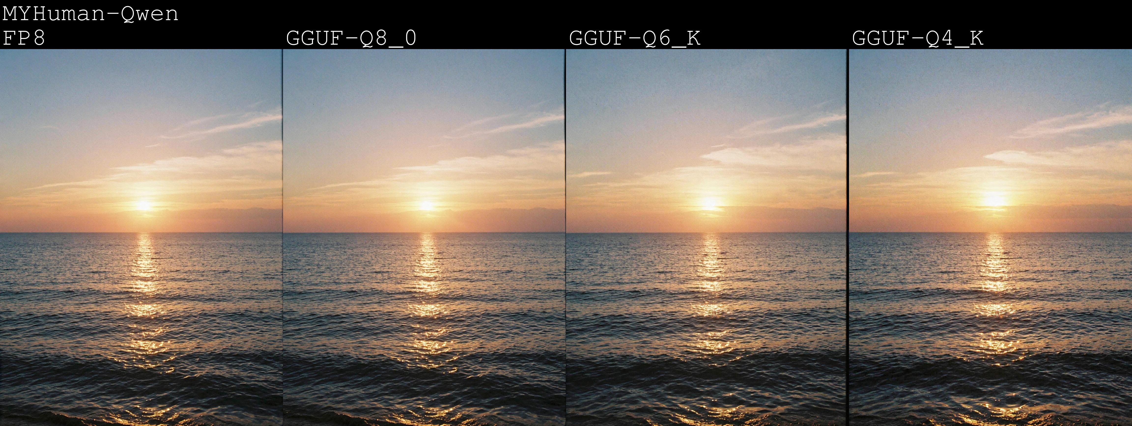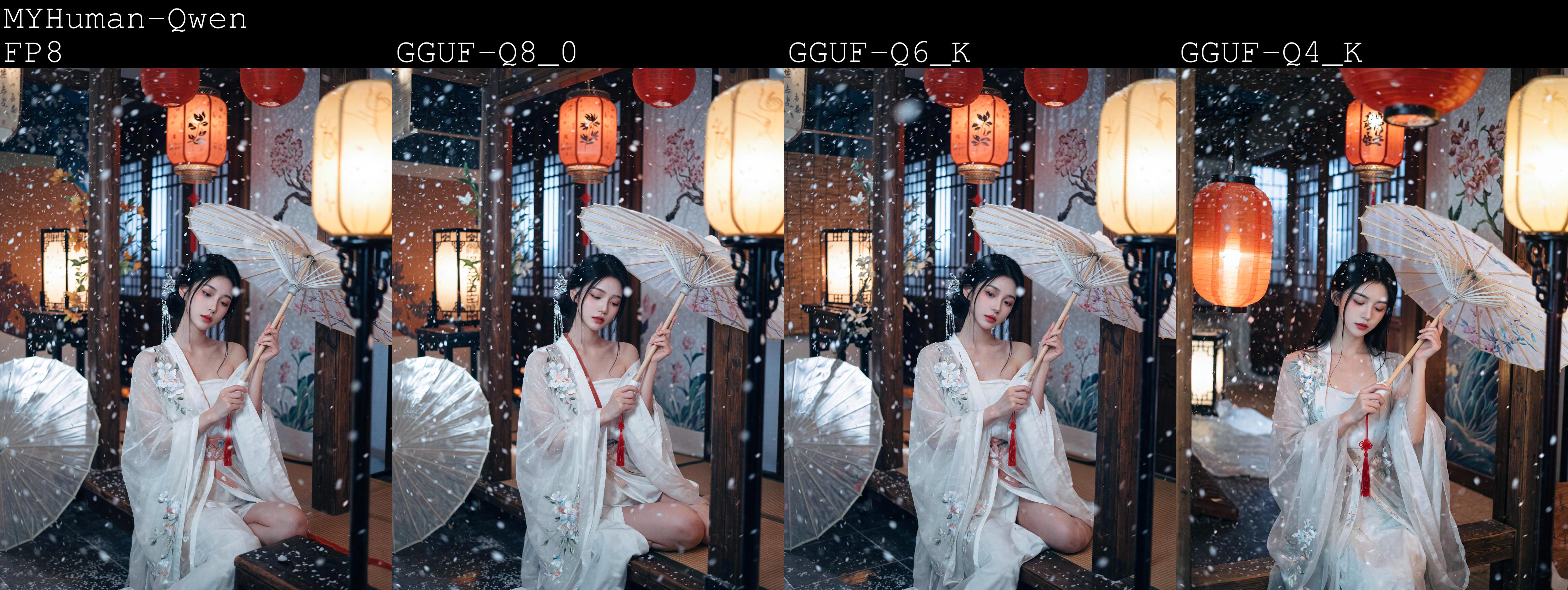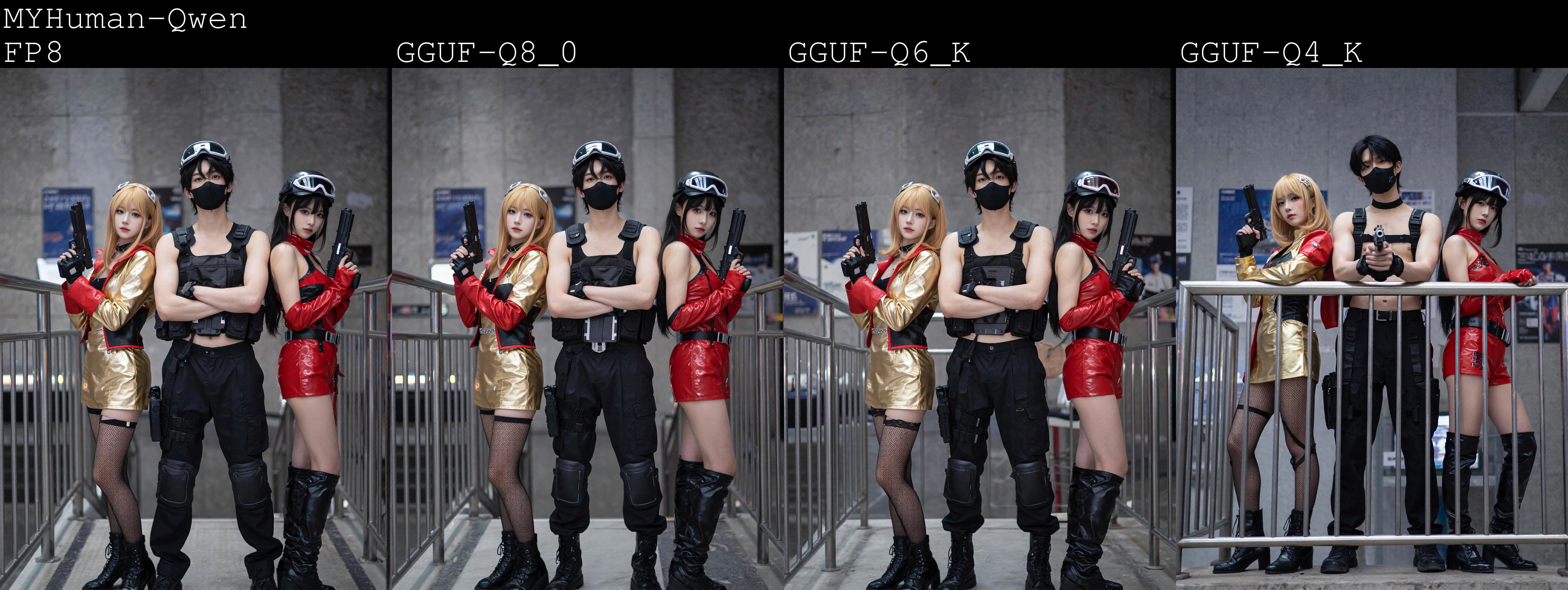 FP8模型的GGUF量化版,质量下降极小,详细对照参见例图。