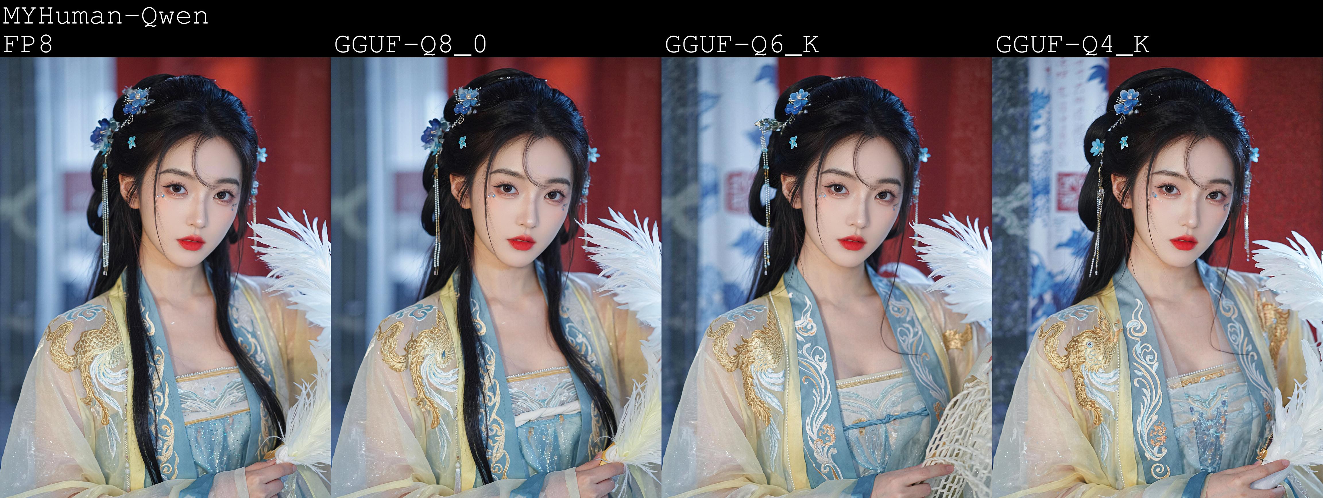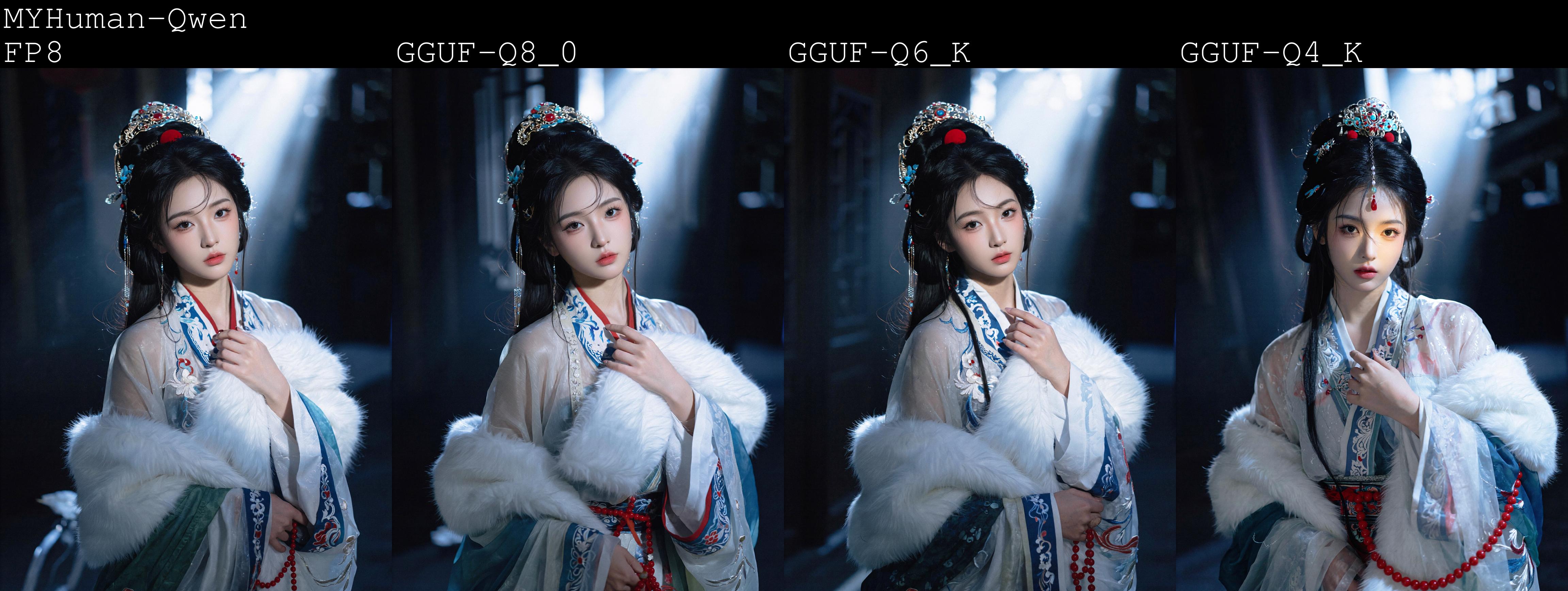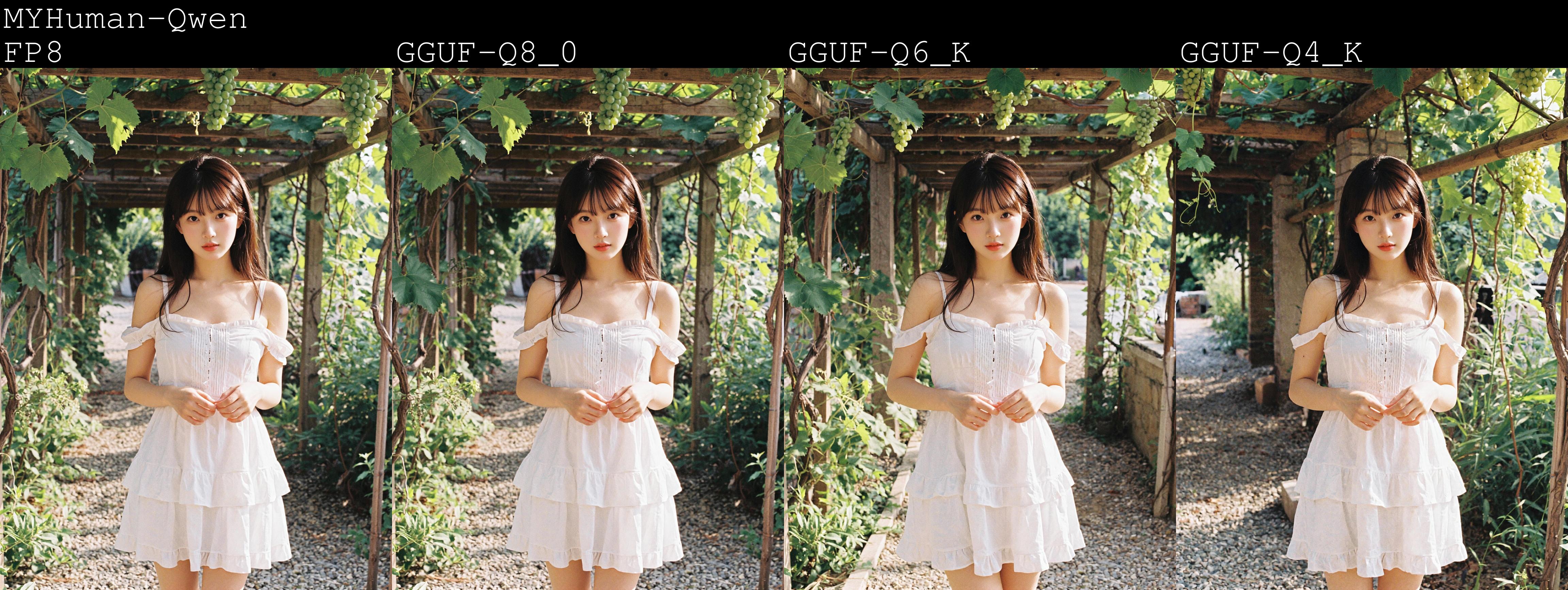 FP8模型的GGUF量化版,质量下降极小,详细对照参见例图。