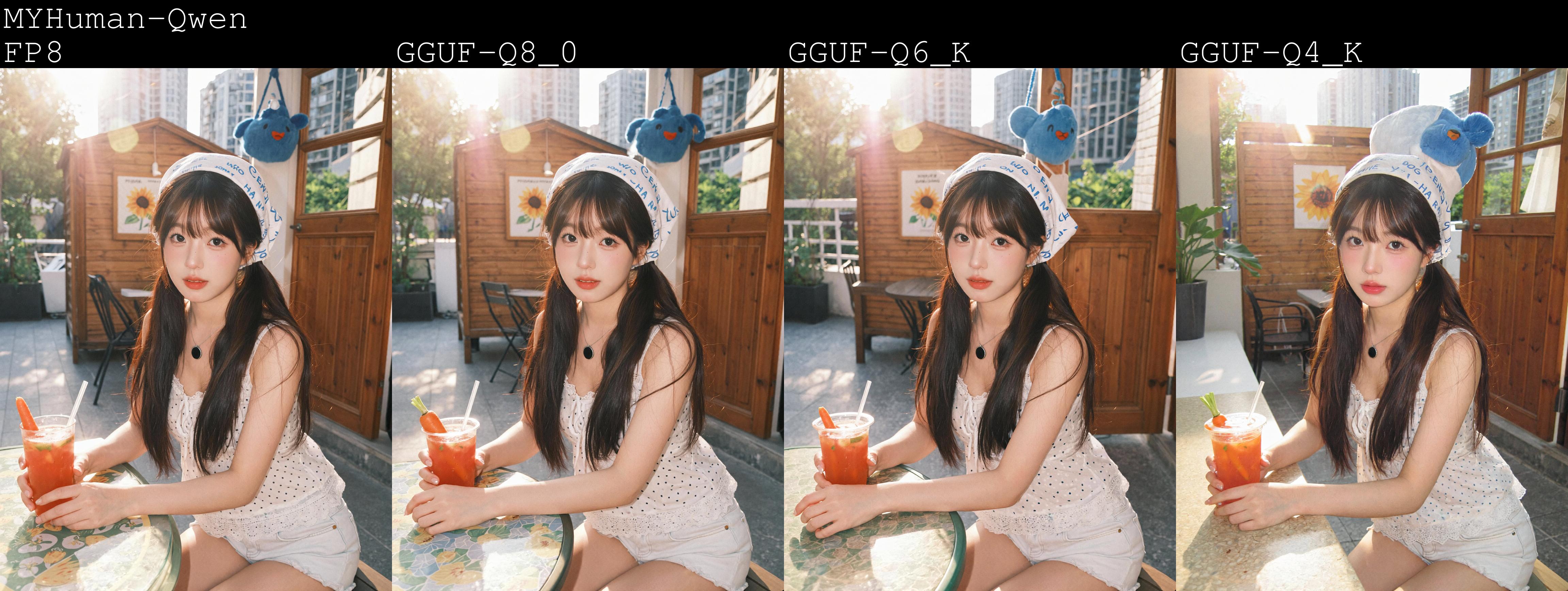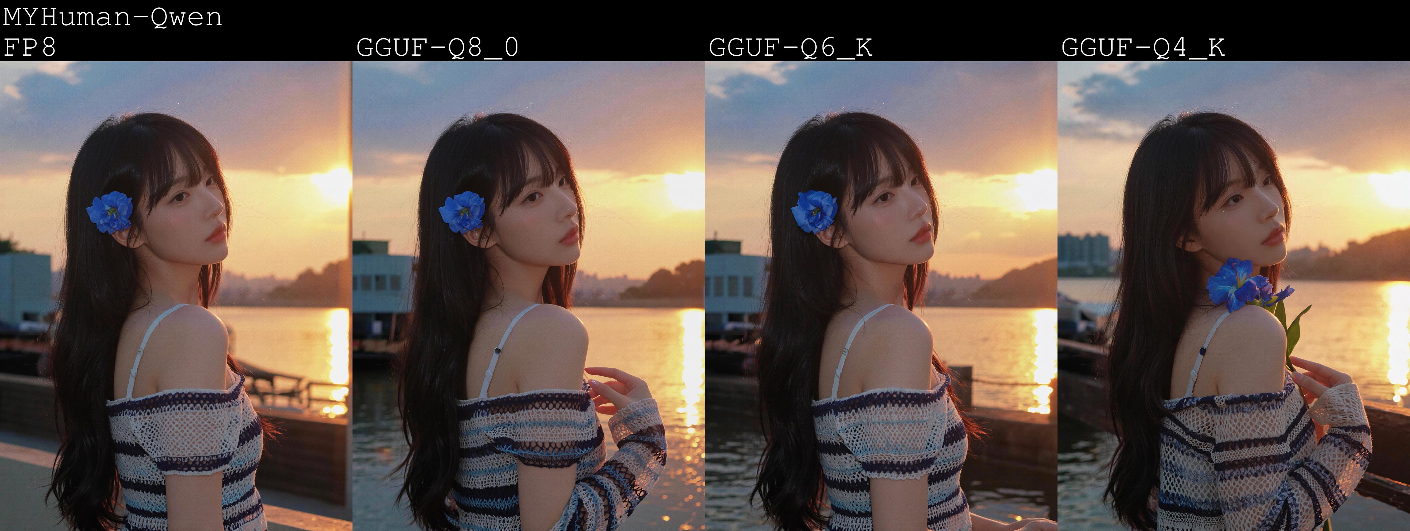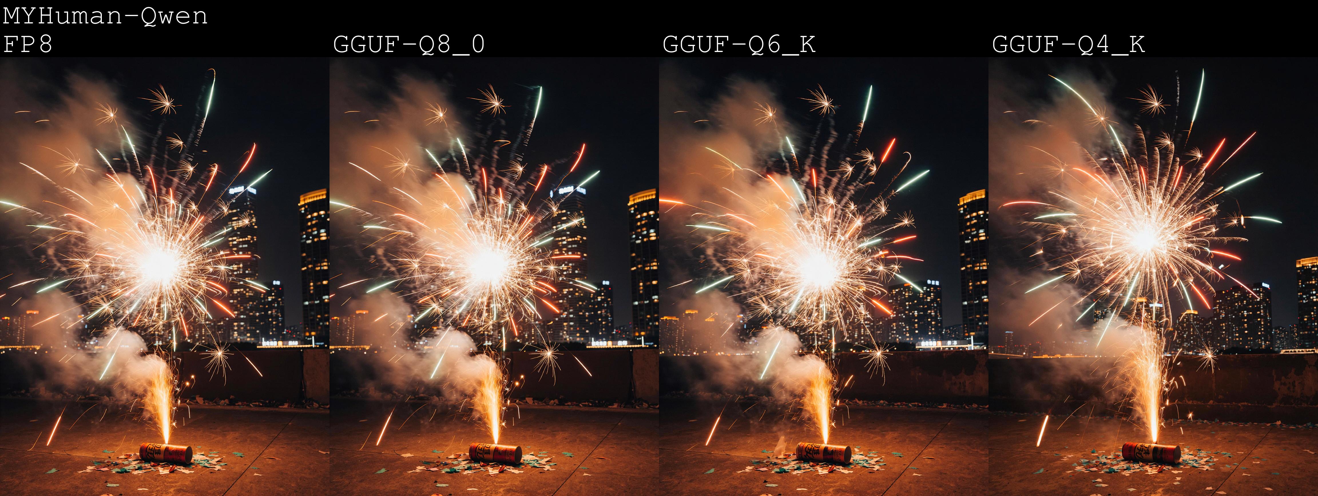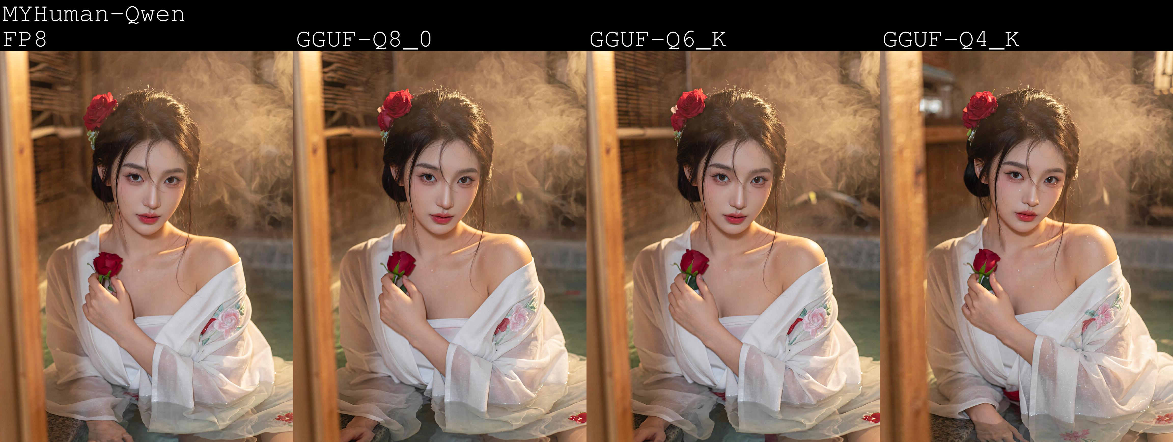 FP8模型的GGUF量化版,质量下降极小,详细对照参见例图。