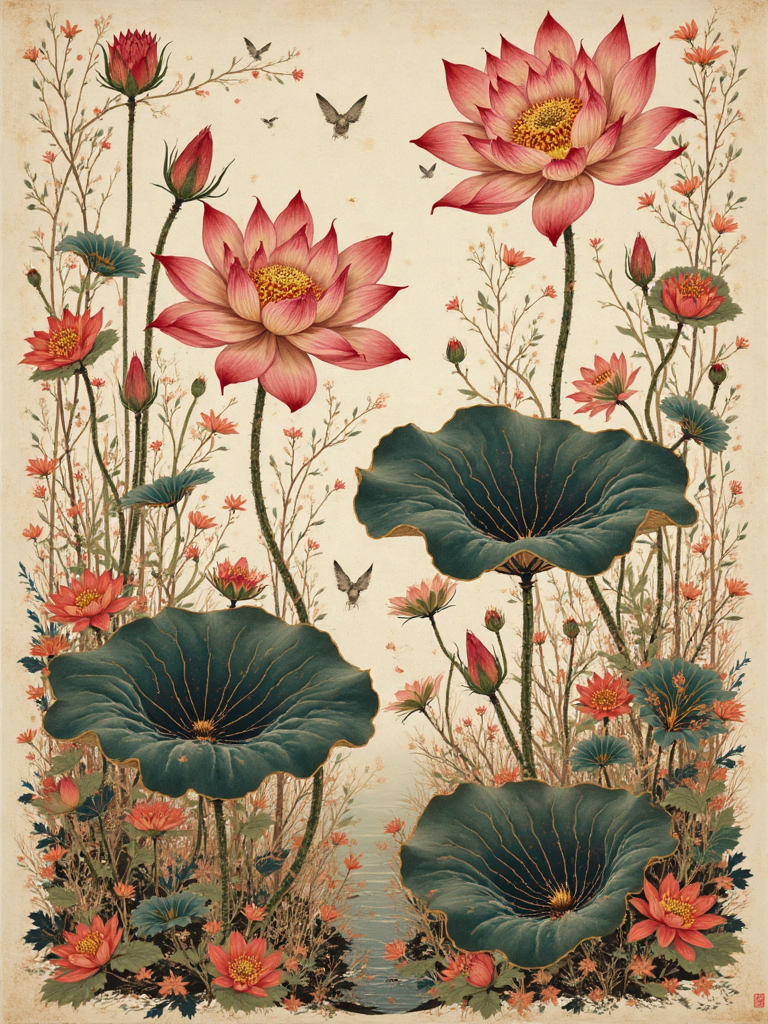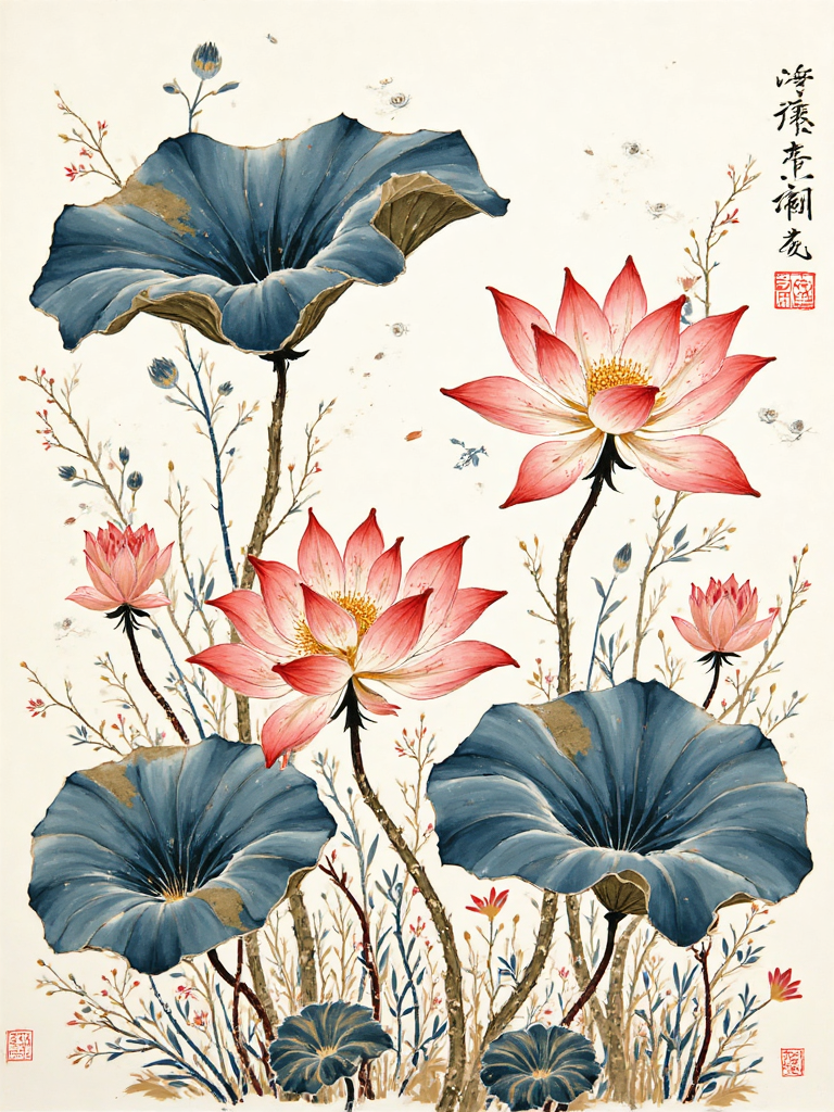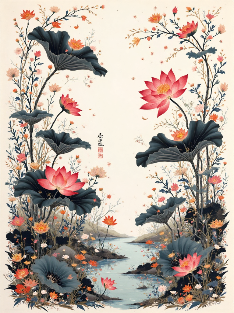 The artistic style of ink wash painting with lotus flowers is elegant and refined, often used in new Chinese cultural and creative products, Zen tea wares, incense packaging design. It can be used as traditional Chinese clothing patterns, e-commerce detail page atmosphere images, tea room posters, WeChat official account article illustrations, also suitable for bookmarks, folding fans, calendars and other cultural and creative products. It can also be used for corporate promotion, hotel soft decoration, festival greeting cards and video background, highlighting the oriental elegant charm.