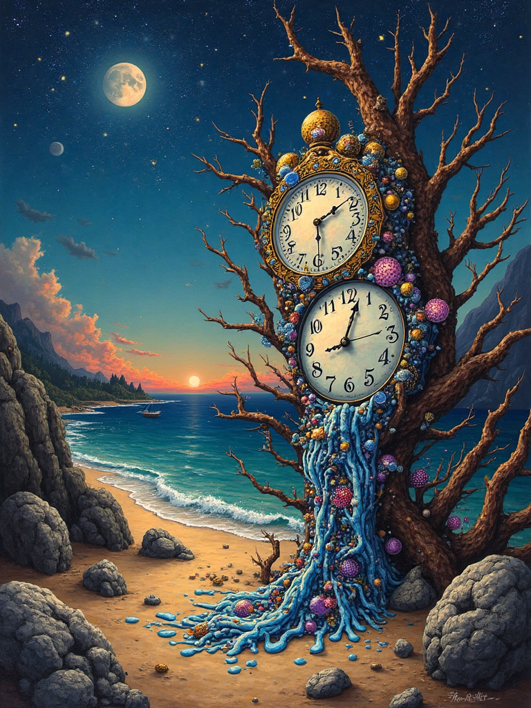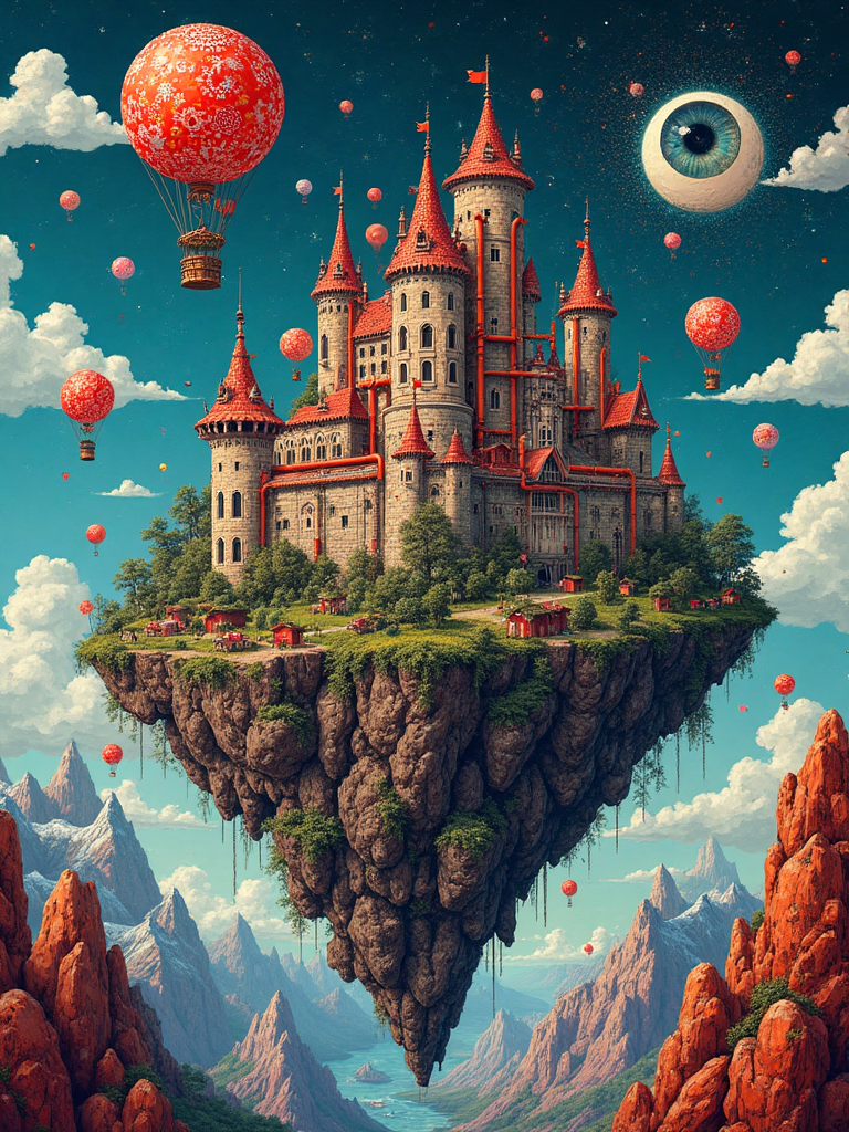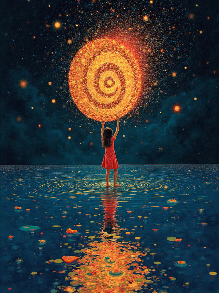 触发词:Traditional themes such as mountains, 8k by Zentangle, by pointillism, Yayoi Kusama, Op art, fractal ical surrealism
