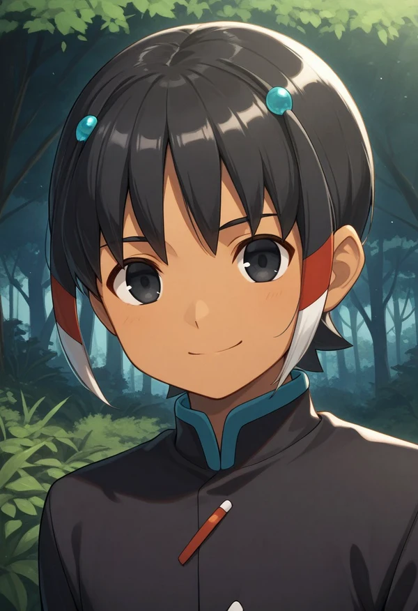 shuu, 1boy, black hair, hair ornament, black eyes, gakuran, dark skin,